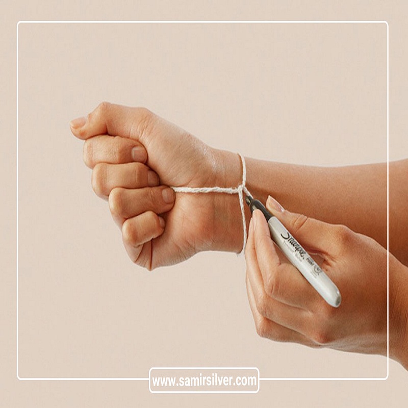 2. استفاده از نخ یا روبان: روش دیگر، استفاده از نخ یا روبان است. می توانید نخ یا روبان را دور مچ بپیچید، نقطه تلاقی را با خودکار یا مداد مشخص کنید و سپس آن قسمت را با خط کش اندازه بگیرید. این روش ها ساده و در دسترس هستند و به شما کمک می کنند سایز دقیق مچ دستتان را به راحتی به دست بیاورید.