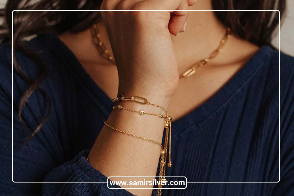 1. دستبندهای زنجیری: در مورد دستبندهای زنجیری، بهتر است سایزی را انتخاب کنید که کمی بزرگ تر از اندازه دور مچ باشد. این کار باعث می شود دستبند به راحتی روی مچ حرکت کند و ظاهر آویزان و شیکی داشته باشد. دستبندهای زنجیری اگر بیش از حد تنگ باشند، ممکن است در حرکت دست ایجاد ناراحتی کنند یا ظاهر آن ها تحت تأثیر قرار بگیرد.